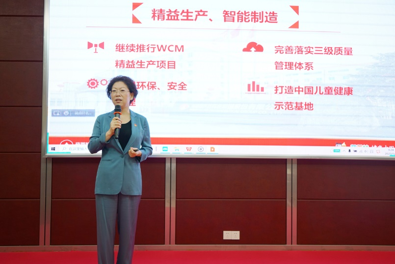 刘景萍董事长引用席大大总书记在2022年博鳌亚洲论坛上的重要讲话勉励全体与会人员,在海南自贸港建设的机遇期,认真学习贯彻落实省第八次党代会精神,坚持党建引领企业发展,将yd12399云顶集团药业集团打造成中国儿童健康领军企业。